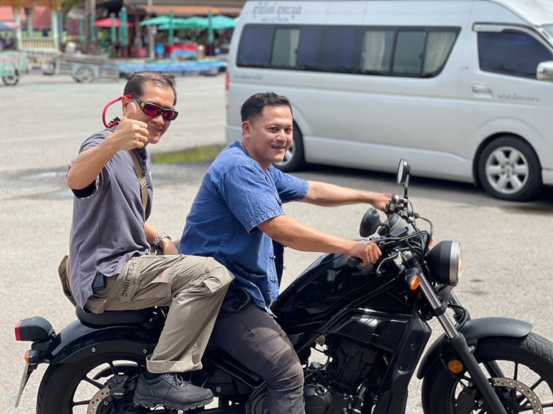 KOL ท่านที่สองเป็นหนุ่มน้อยชาวจีน ที่มาอยู่ในไทย 4 ปีกว่าแล้ว และได้กลายเป็นบล็อกเกอร์นำเสนอแหล่งท่องเที่ยวและวัฒนธรรมของไทยเข้าไปสู่ช่องทางออนไลน์ในจีนอย่างประสบผลสำเร็จดีเยี่ยม ท่านนี้ ชื่อ ‘’คุณ จิมมี่’’ ใช้กล้องเล็กๆแต่คุณภาพชัดแจ๋วถ่ายคลิปสื่อสารอย่างออกรสออกชาติไปได้ตลอดทริป ผมมีโอกาสสอนวิธีก้มกราบเบญจางคประดิษฐ์ให้แกได้ลองทำ เพื่อนๆชาวจีนที่ follow แกจะได้ทำเป็นตามไปด้วย