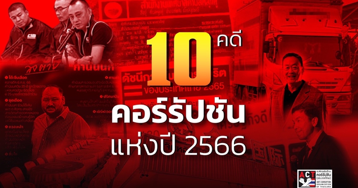 องค์กรต่อต้านคอร์รัปชัน (ประเทศไทย) ส่งสัญญาณเชิญชวนประชาชนเฝ้าระวังคดี/กรณีคอร์รัปชัน 10 เรื่องสำคัญในรอบปี 2566 หลายคดียังไม่จบแต่เจ็บ ทั้งคดีกำนันนก คดีหมูเถื่อน ฯลฯ ไปจนถึงคดีเสาไฟกินรี ดังตัวเลขมูลค่าเงินบาปจากคอร์รัปชันทุกรูปแบบสูงถึง 5 แสนล้านบาทต่อปี เผยทุกกรณีสะท้อนภาพห่วงโซ่คอร์รัปชันโกงกินร่วมกันของข้าราชการ-นักการเมือง-กลุ่มทุนชัดเจนและรุนแรงขึ้น เสนอรัฐบาลเร่งปฏิรูป 3 องค์กรรัฐที่สังคมกังขา “สนง.ตำรวจแห่งชาติ-กรมราชทัณฑ์-ป.ป.ช.” และเดินหน้าตั้ง “วอร์รูมต้านโกง”