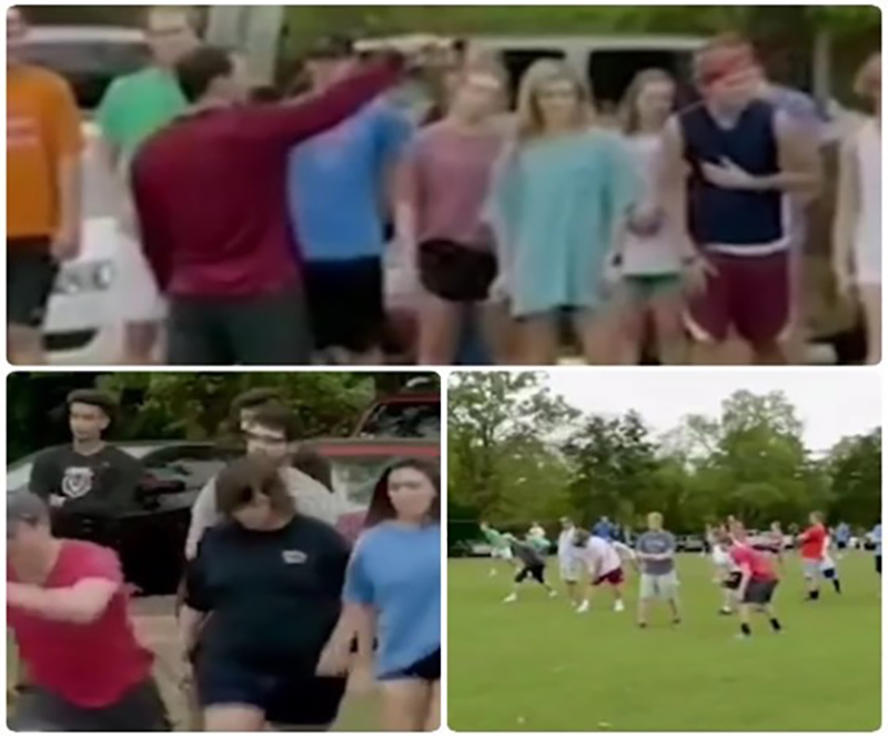 ในคลิปนี้แสดงภาพหนุ่มสาวนักศึกษาราว 40 คน ยืนเป็นแถวหน้ากระดานเรียงกัน ณ เส้นเครื่องหมายที่เป็นจุดตั้งต้น
