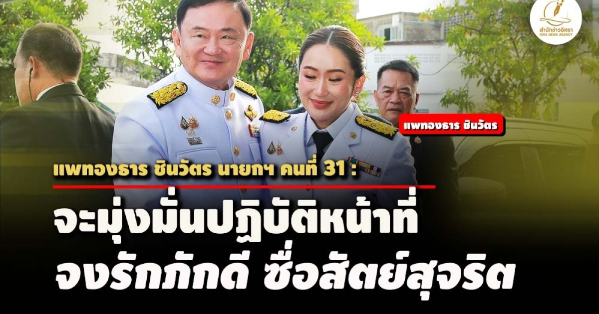• แพทองธาร ชินวัตร นายกฯ คนที่ 31 : จะมุ่งมั่นปฏิบัติหน้าที่ จงรักภักดี ซื่อสัตย์สุจริต