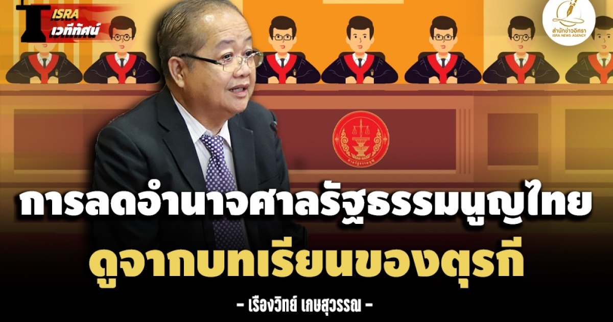 ตุรกีเป็นประเทศที่มีอะไรหลายอย่างคล้ายกับประเทศไทย เช่น ใช้นโยบายประชานิยมเหมือนกัน มีศาลรัฐธรรมนูญและการยุบพรรคการเมืองเหมือนกัน แต่ในที่สุด ค.ศ. 2001 ตุรกีสามารถแก้ไขรัฐธรรมนูญลดอำนาจศาลรัฐธรรมนูญได้สำเร็จ