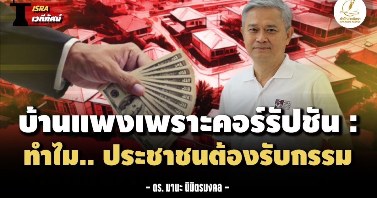 "...คอร์รัปชันได้ส่งผลกระทบต่อปัญหาปากท้องของประชาชนอย่างไม่อาจเลี่ยง.. ประชาชนต้องซื้อบ้านราคาแพงขึ้น เพราะถูกบวกด้วยต้นทุนจากการจ่ายสินบนและดอกเบี้ยเงินลงทุนที่เพิ่มขึ้นจากความล่าช้าเพราะเจ้าหน้าที่เจตนาหน่วงเหนี่ยว ทั้งหมดนี้คือต้นทุนจากคอร์รัปชัน สุดท้ายประชาชนก็กลายเป็น “เดอะแบก” ดอกเบี้ยผ่อนบ้านหัวโต แบกรับค่าครองชีพที่สูงขึ้นเพราะบ้านหลังหนึ่งผ่อนนาน 20 – 30 ปี..."