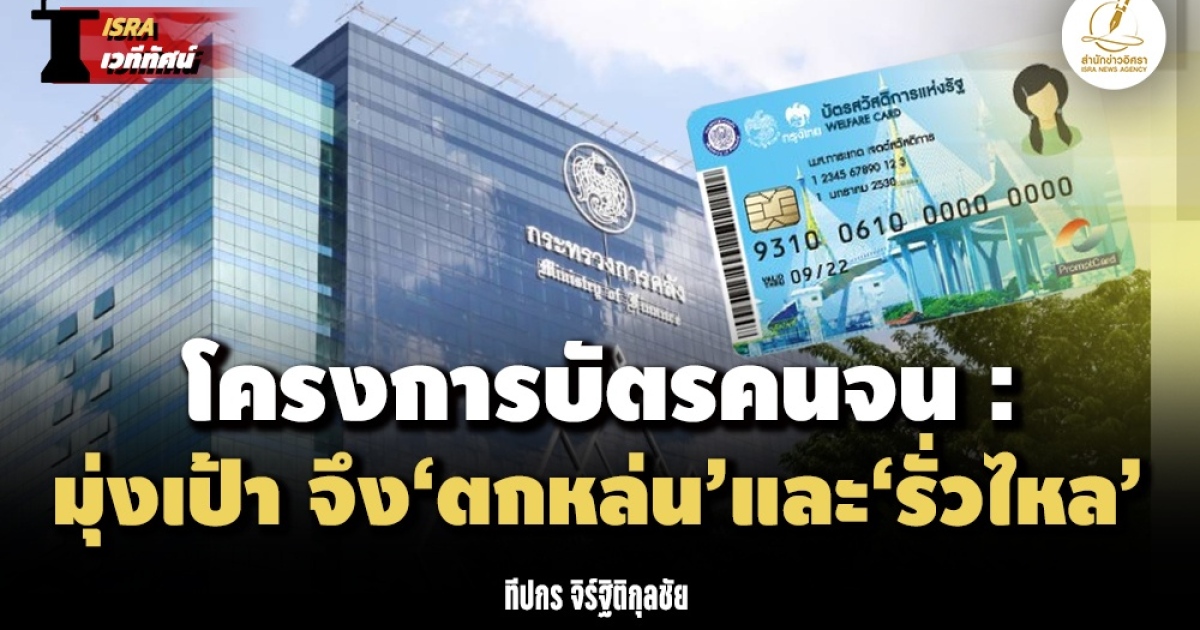 “…โครงการบัตรคนจน มีปัญหาตั้งแต่การออกแบบเกณฑ์ที่ไม่ชัดเจน การคัดกรองที่ไม่เข้มงวด และการขาดการตรวจสอบซ้ำ ทำให้เงินช่วยเหลืออาจไม่ได้ไปถึงมือคนจนที่ต้องการจริงๆ และมีการรั่วไหลของงบประมาณไปยังผู้ที่มีฐานะดีกว่า…”