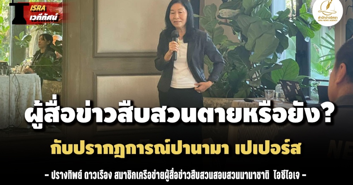 หมายเหตุสำนักข่าวอิศรา (www.israenws.org) เมื่อวันที่ 9 ม.ค. ที่สตูดิโอเดอะโบทานิคัล มีการประชุมโครงการความร่วมมือเครือข่ายผู้สื่อข่าวสืบสวนสอบสวน โดยตอนหนึ่งของการประชุม น.ส.ปรางทิพย์ ดาวเรือง สมาชิกเครือข่ายผู้สื่อข่าวสืบสวนสอบสวนนานาชาติ - ไอซีไอเจ (International Consortium of Investigative Journalists: ICIJ) ได้กล่าวถึงคำถามว่าปัจจุบันผู้สื่อข่าวสืบสวนสอบสวนตายหรือยัง กับปรากฎการณ์ปานามา เปเปอร์ส โดยสำนักข่าวอิศรานำเอารายละเอียดมาเรียบเรียงดังนี้