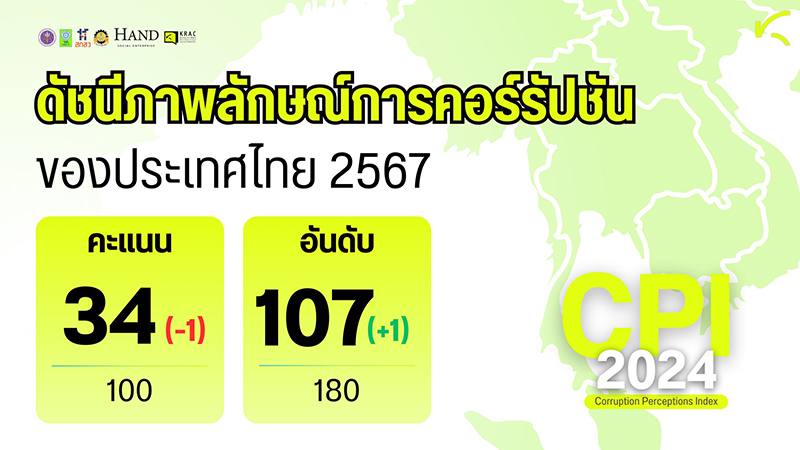 "...ไทยได้ 34/100 คะแนน (อันดับ 107 ของโลก) ต่ำกว่าค่าเฉลี่ยโลกที่ 43 คะแนน คะแนนลดลง 1 จุด แต่กลับอันดับดีขึ้น เพราะสถานการณ์คอร์รัปชันทั่วโลกแย่ลง!..."