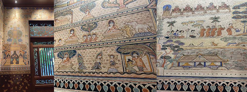 ผนังในส่วนที่เหลือตั้งใจจะเขียนถึงตำนานพระเจ้าเลียบโลกของล้านนา ปาฏิหาริย์ที่พระพุทธเจ้าเสด็จมาล้านนา สอดแทรกด้วยคำสอนคติเตือนใจจากนิทานพื้นบ้าน เพราะเป็นบ้านส่วนบุคคลมิใช่อุโบสถจึงต้องการให้ผู้ที่เข้ามาเยือนศาลาแห่งนี้มีจิตใจที่สงบและสำรวม สำหรับสีที่ใช้ในงานเขียนผนังเป็นสีที่ได้มาจากธรรมชาติ จากดิน หิน และพืชคราม นำมาต้มสกัดเอาฟองที่ได้ไปตากแห้งจนกลายเป็นผงสี