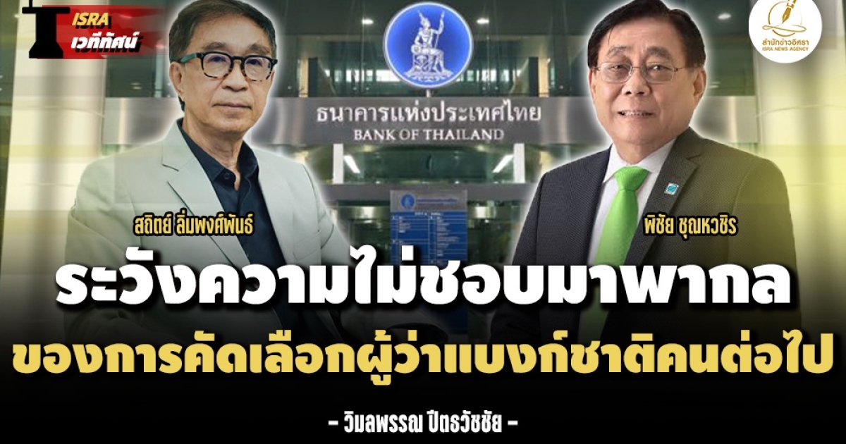 เรามีเรื่องความไม่ชอบมาพากลในการทำงานของภาครัฐปรากฎให้เห็นอยู่ทุกวัน ในเวลานี้มีเรื่องหนึ่งที่ต้องช่วยกันเฝ้าระวัง และติดตามกันอย่างใกล้ชิด คือ การคัดเลือกผู้ว่าการธนาคารแห่งประเทศไทย(ธปท.)หรือแบงก์ชาติคนต่อไป ที่จะเริ่มกระบวนการในอีกไม่กี่อาทิตย์ข้างหน้า