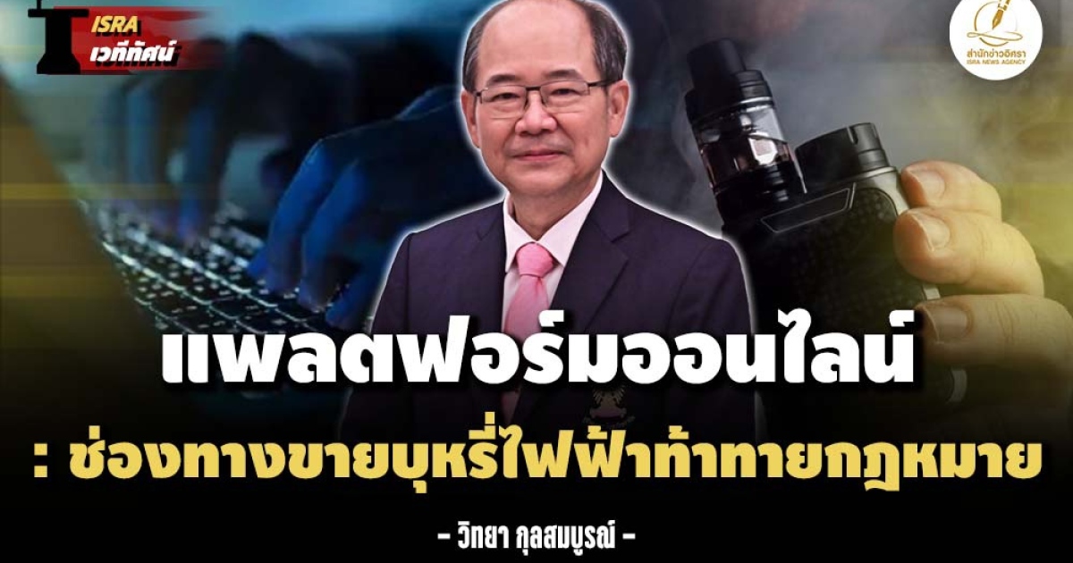 "...ทั้งที่ ประเทศไทยมีกฎหมายห้ามนำเข้าและจำหน่ายบุหรี่ไฟฟ้า แต่ แพลตฟอร์มออนไลน์เหล่านี้ ยังทำหน้าที่เป็นช่องทางหลักในการโฆษณาและจำหน่ายบุหรี่ไฟฟ้าอย่างผิดกฎหมาย โดยผู้ค้าสามารถแสดงตัวในรูปแบบร้านค้าออนไลน์ กลุ่มแชท หรือโพสต์โฆษณา ทำให้ยากต่อการควบคุม แม้เจ้าหน้าที่จะสามารถจับกุมแหล่งจำหน่าย เช่น โกดังเก็บส่งสินค้า หรือร้านค้าจริงที่ลักลอบจำหน่าย แต่ก็ยังมีการซื้อขายผ่านออนไลน์อย่างต่อเนื่อง..."