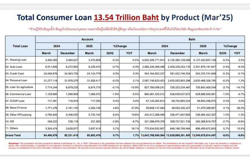หนี้สินครัวเรือนที่มีการจัดเก็บในระบบเครดิตบูโรที่มาจากสถาบันการเงินกว่า 160 แห่งมีอยู่เท่ากับ 13.5 ล้านล้านบาท