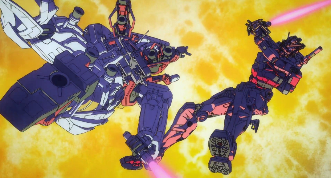สิ่งต่อมาที่เป็นปัญหาคือฉากต่อสู้ของเรื่องนี้ ที่ไม่สามารถพรีเซ้นออกมาให้ผู้ชมรู้สึกตื่นเต้นและสนุกได้เลยแม้แต่ครั้งเดียว หากไม่ใช่ฉากต่อสู้ที่อ้างอิงมาจาก Mobile Suit Gundam ภาคเก่าๆ เพื่อเป็น Easter egg แถมด้วยความเก่งจนเกินเหตุ ของตัวละครเอก ผนวกกับการเขียนบทตัวละครที่ไม่น่าเอาใจช่วยแล้ว จึงไม่สามารถรู้สึกลุ้นและเอาใจช่วยตามไปกับเหตุการณ์ที่เกิดขึ้นในเรื่องแม้แต่น้อย ขนาดเหตุการณ์ที่น่าจะใหญ่ที่สุดในกลางเรื่อง ที่ดูแล้ว หุ่นตัวเอกยังไงก็มีสู้ลำบากมากแน่ๆ ก็ยังไม่ให้ตัวละครเอกได้สู้ จนไม่เหลืออุปสรรคใดๆ ให้แก่เรื่องราวนี้เลยซักอย่าง เพราะทุกอย่างมันง่ายไปหมดจนตัวละครแทบไม่ต้างพยายามทำอะไรเลยด้วยซ้ำ