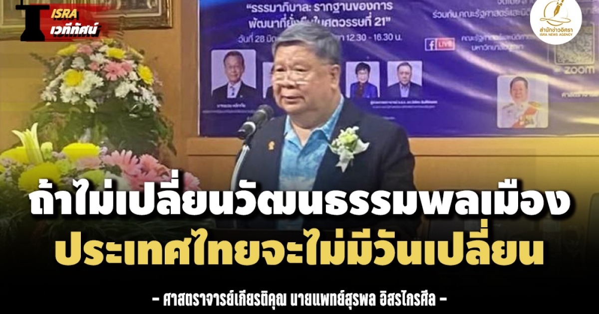 ผมได้รับเชิญไปเป็นประธานเปิดงานสัมมนาทางวิชาการ เรื่อง การพัฒนาธรรมาภิบาลในสังคมไทย เมื่อวันที่ 28 มิถุนายน พ.ศ.2568 ที่มหาวิทยาลัยบูรพา ผมได้มีโอกาสวิเคราะห์ถึงสถานะการณ์ปัจจุบันของประเทศไทย ว่าเรามาถึงจุดนี้ได้อย่างไร และเราจะมีจุดเปลี่ยนให้ประเทศเราดีขึ้นได้อย่างไร