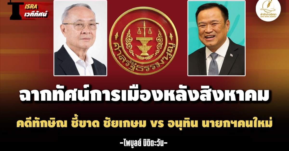 หมายเหตุ : สำนักข่าวอิศรา (www.isranews.org) นายไพบูลย์ นิติตะวัน เลขาธิการพรรคพลังประชารัฐ (พปชร.) วิเคราะห์ฉากทัศน์การเมืองหลังสูญญากาศ ภายหลังศาลรัฐธรรมนูญมีคำสั่งให้นางสาว แพทองธาร ชินวัตร หยุดปฏิบัติหน้าที่นายกรัฐมนตรีจนกว่าจะมีคำวินิจฉัย กรณีปรากฏคลิปเสียงสนทนากับสมเด็จฮุน เซน ประธานวุฒิสภากัมพูชา เรื่องข้อพิพาทบริเวณชายแดนไทยกับกัมพูชา