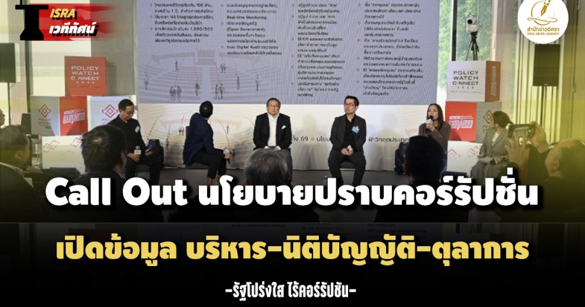 หมายเหตุ : สำนักข่าวอิศรา (www.isranews.org) การจัดงานมหกรรม Policy Watch Connect 2026 เวที Policy Forum ในหัวข้อ รัฐโปร่งใส ไร้คอร์รัปชัน โดยความร่วมมือของ 3 องค์กรหลัก ได้แก่ เครือข่ายเทคโนโลยีภาคประชาชน (civic tech) หรือ Wevis สร้างธรรมาภิบาลและความโปร่งใส (Hand social enterprise) และ องค์กรต่อต้านคอร์รัปชัน (ประเทศไทย) หรือ ACT เพื่อส่งมอบต่อพรรคการเมืองในรูปแบบของสมุดปกขาว จัดโดยศูนย์สื่อสารวาระทางสังคมและนโยบายสาธารณะ (The Active) Thai PBS