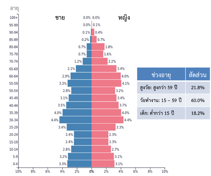 2. ในปี 2562 จำนวนประชากรวัยทำงานอายุ 15 – 59 ปี มีสัดส่วนร้อยละ 61 ของประชากรทั้งหมดในโลก (United Nations, 2563)