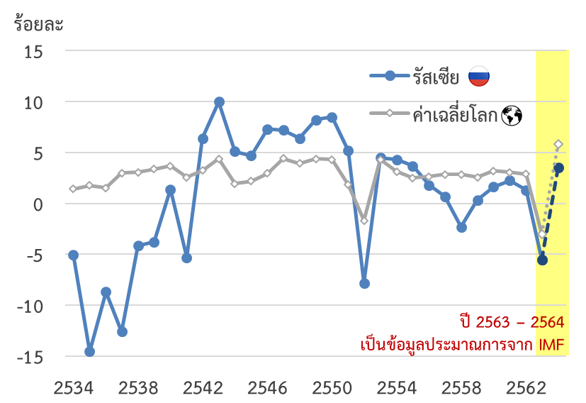 รูปที่ 3 อัตราการขยายตัวทางเศรษฐกิจของรัสเซีย (ปี 2534 – 2564)
