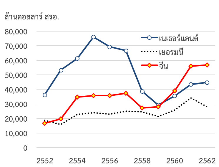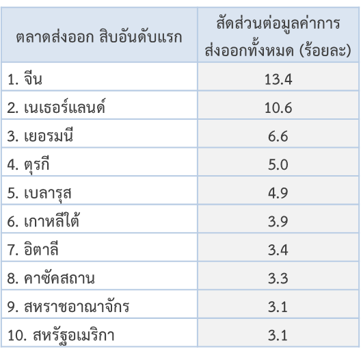 หมายเหตุ: เนเธอร์แลนด์เป็นตลาดส่งออกอันดับ 1 ของรัสเซียตั้งแต่ปี 2547 ถึงปี 2559
