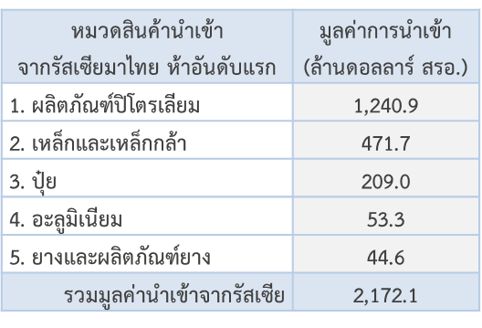 ตารางที่ 4 มูลค่าสินค้านำเข้าจากรัสเซียมาไทย (ปี 2562)