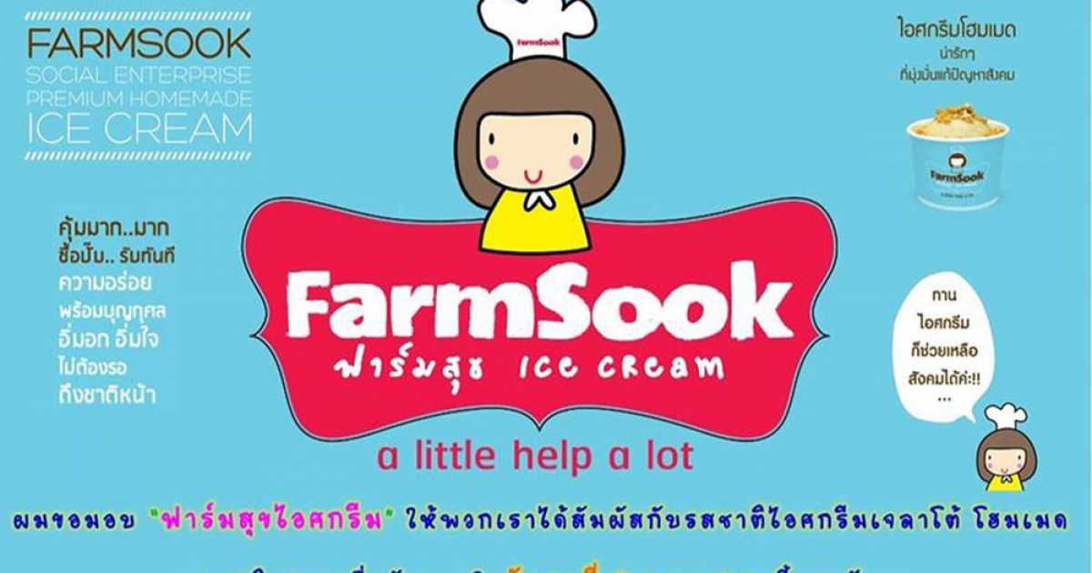 "...ชื่อ “ฟาร์มสุขไอศกรีม” ตั้งขึ้นเพื่อสะท้อนถึงความสุขของทั้งผู้ให้และผู้รับ เป็นกิจการ “สร้างโอกาส” ให้เด็กได้เป็นผู้ผลิตไอศกรีมมีรายได้เลี้ยงตนเอง โดยบอมทำหน้าที่ด้านการตลาด นำไปวางขายตามจุดต่าง ๆ ที่เจ้าของเอื้อเฟื้อสถานที่รับการสั่งซื้อจากผู้มีจิตศรัทธา อย่างไรก็ดี บอมบอกว่า “ฟาร์มสุขไอศกรีมต้องการให้ผู้ซื้อได้กินไอศกรีมเจลาโต้ รสชาติหวานมันรวมทั้ง คุณภาพเทียบเท่ากับร้านไอศกรีมอิตาเลียนดัง ๆ แต่ต้องไม่ได้ซื้อด้วยความสงสารหรือเห็นใจ เพราะนั่นไม่ตอบโจทย์กิจการเพื่อสังคมที่ต้องการความยั่งยืนให้ได้ลิ้มรสไอศกรีมที่มีคุณภาพ”..."