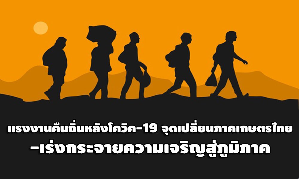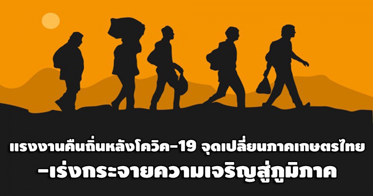 คงจะไม่มีบ่อยครั้งนักที่จะมีคลื่นอพยพแรงงานเมืองที่มีคนรุ่นใหม่ที่มีความรู้และเทคโนโลยีย้ายคืนถิ่นมากเช่นครั้งนี้ ไทยต้องคว้าโอกาสสร้างการเปลี่ยนแปลงในภาคเกษตรและเร่งกระจายความเจริญไปสู่ภูมิภาคให้เกิดขึ้นจริง เพื่อดึงดูดแรงงานกลุ่มนี้ให้อยู่ในภาคเกษตรต่อไป เพื่อเป็นกำลังสำคัญสร้างมูลค่าใหม่ทางการเกษตร รวมทั้งพัฒนาการท่องเที่ยวเชิงเกษตรและสุขภาพ และทางการควรจัดหาทรัพยากร (ที่ดินและน้ำ) ความรู้เชี่ยวชาญ และช่องทางการขายทั้งออฟไลน์และออนไลน์แก่เกษตรกรทุกกลุ่ม รวมทั้งพัฒนาและแชร์ข้อมูลเทคโนโลยีดิจิทัลใหม่ๆ ระหว่างกันเพื่อช่วยวางแผนพัฒนาภาคเกษตรในทุกมิติ