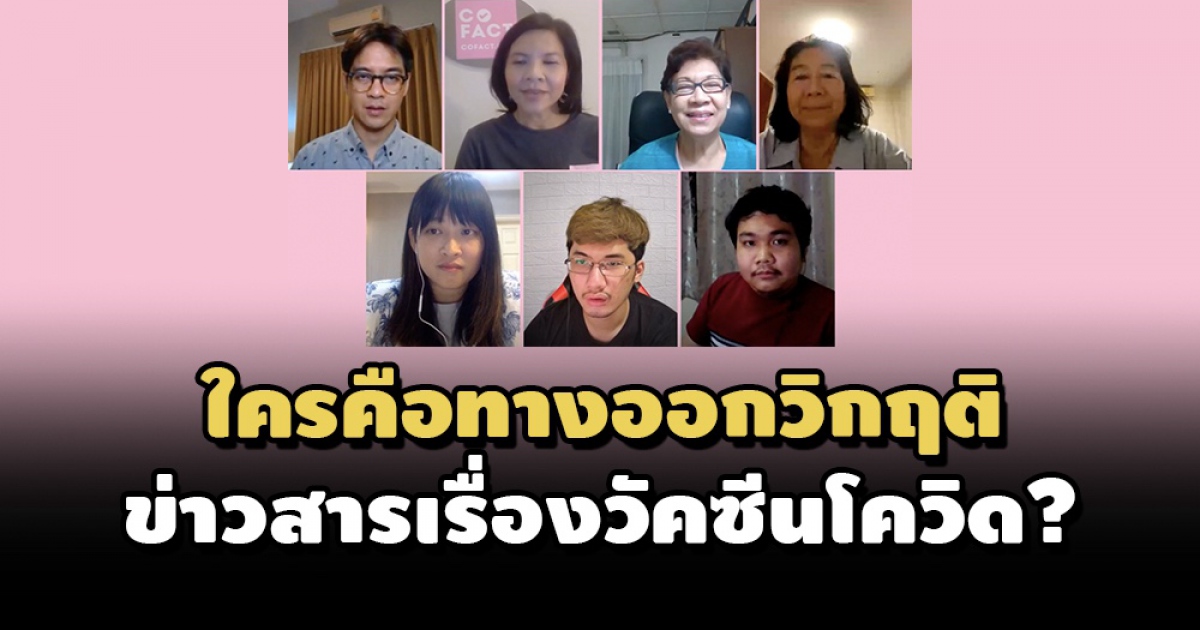 เพื่อไขคำตอบว่า แล้วใครคือทางออกวิกฤตข่าวสารเรื่องวัคซีนโควิด เมื่อวันที่ 16 พ.ค.2564 ภาคีโคแฟค (COFACT) ประเทศไทย จึงได้จัดงานเสวนาโต๊ะกลมออนไลน์ ‘รัฐ-สื่อ-สังคม: ใครคือทางออกวิกฤตข่าวสารเรื่องวัคซีน’ มีข้อมูลที่น่าสนใจดังนี้