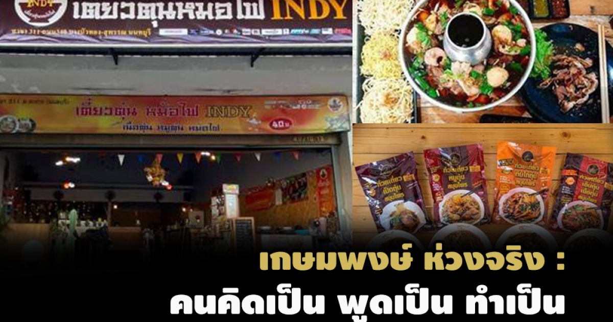เต้ยคิดจะให้ก๋วยเตี๋ยวหมูตุ๋นมีอัตลักษณ์โดดเด่น แทนที่จะขายเป็นชาม ๆ ก็นำมาดัดแปลงขายแบบหม้อไฟ แยกเส้นสมุนไพรไว้ต่างหากพร้อมน้ำจิ้ม 3 รส ไว้ให้ลูกค้าเลือกตามความชอบ ตั้งชื่อร้าน “เตี๋ยวตุ๋นหม้อไฟ INDY” ให้ดูทันสมัยตามแนวคิดนอกกรอบ เต้ยยอมรับว่าก่อนเปิดไม่แน่ใจว่าจะไปรอดหรือไม่ ยิ่งเมื่อเห็นภรรยาต้องมานั่งขัดก้นหม้อไฟรอยดำ ก็นึกสงสาร และตั้งใจว่าจะทำให้สำเร็จจนได้ หากล้มก็จะเลิกกลับไปหางานเป็นลูกจ้าง