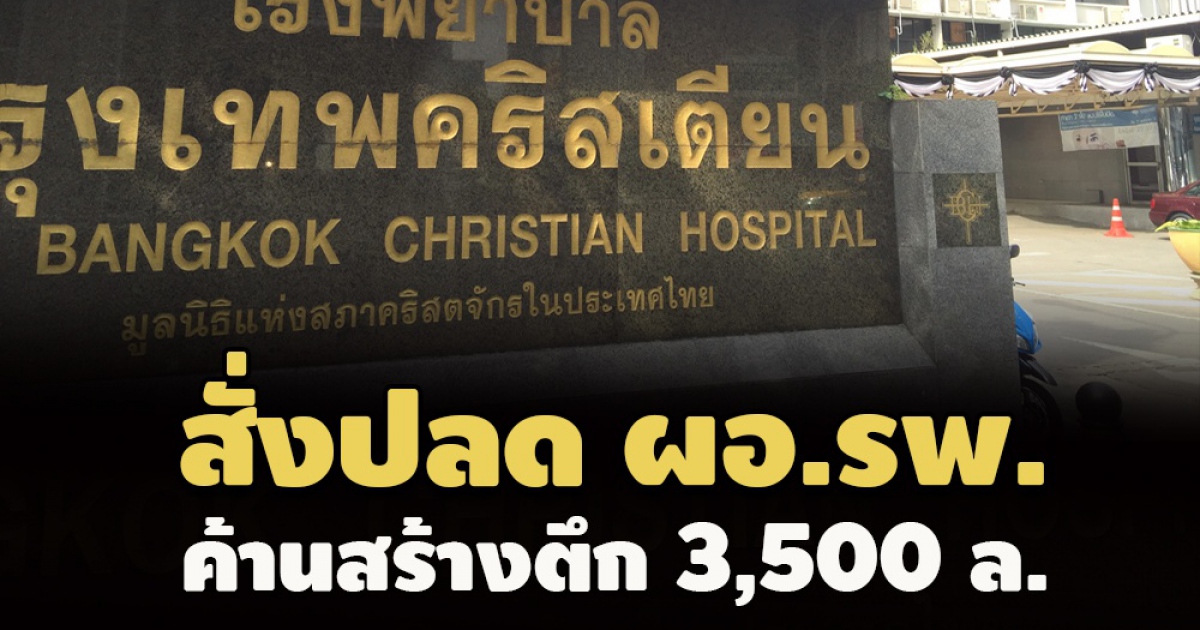 ร้อง อิศรา ช่วยสอบปม คกก.มูลนิธิแห่งสภาคริสจักรประเทศไทย ออกคำสั่งปลด ผอ.รพ.กรุงเทพคริสเตียน หลังออกตัวค้านงานสร้างตึก 3,500 ล้าน - เจ้าตัวยื่นฟ้องศาลแรงงานถูกเลิกจ้างไม่เป็นธรรมแล้ว