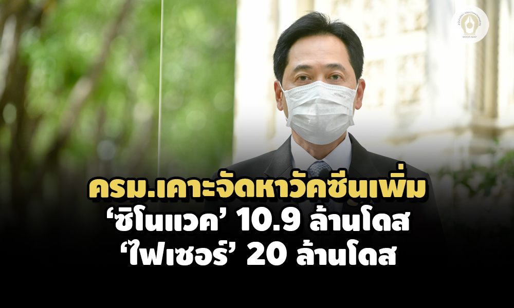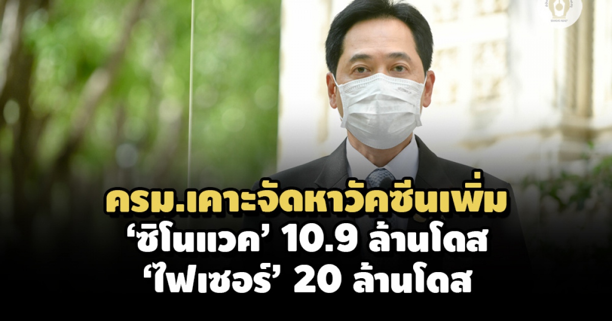 ครม.เห็นชอบจัดหาวัคซีน ‘ซิโนแวค’ เพิ่ม 10.9 ล้านโดส วงเงิน 6.1 พันล้านบาท มอบหมายกรมควบคุมโรค จัดหา 2 ล็อตระหว่าง ก.ค. – ส.ค. พร้อมเห็นชอบให้ ‘ไฟเซอร์’ เป็นวัคซีนหลัก สั่ง สธ. จัดหา 20 ล้านโดส ส่วน ‘โมเดอร์นา’ มอบองค์การเภสัชฯ เป็นตัวกลางดำเนินการให้ภาคเอกชน