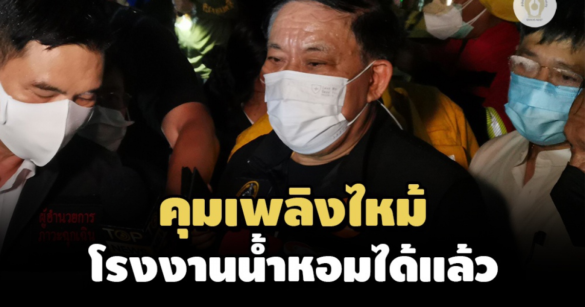 กทม.เผยคุมเพลิงไหม้โกดังน้ำหอม นิคมฯลาดกระบังได้แล้ว ไม่มีปัญหาสารเคมีรั่วไหล-ไม่พบผู้บาดเจ็บ ส่วนสาเหตุเพลิงไหม้ ต้องรอการพิสูจน์จากตำรวจ
