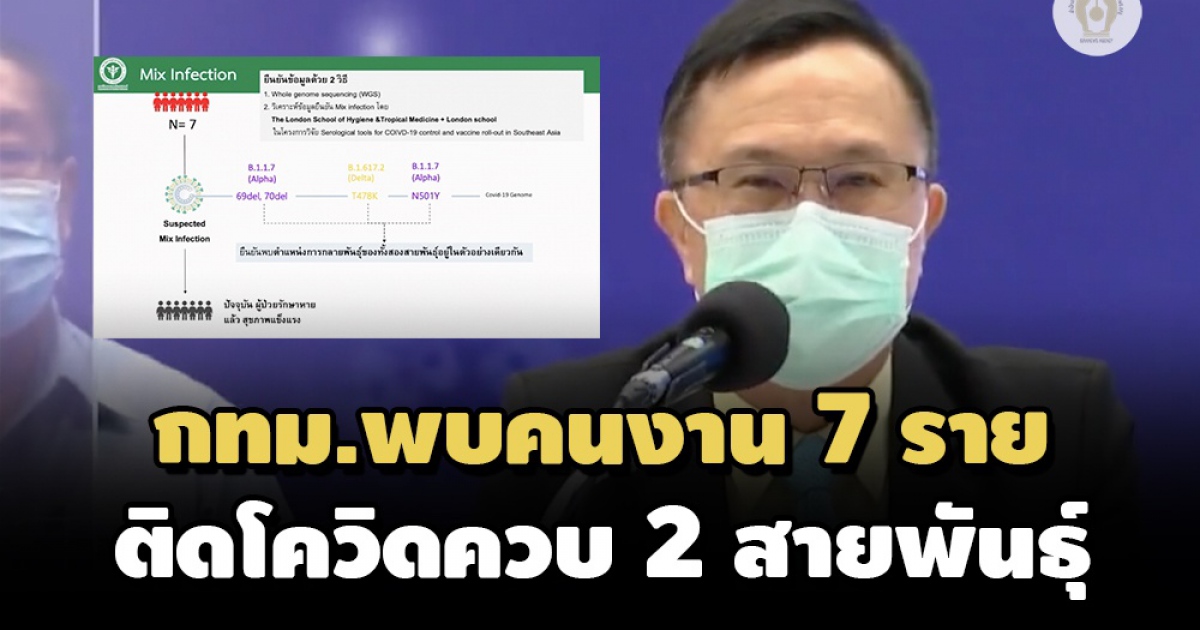 นอกจากนี้ ในการตรวจแคมป์ก่อสร้างแห่งหนึ่งในพื้นที่ กทม. ยังพบการติดเชื้อในคนเดียวกัน 2 สายพันธุ์ หรือ Mix Infection คือทั้งสายพันธุ์เดลตา และสายพันธุ์อัลฟ่า โดยมีแรงงาน 7 คน ใน 200 กว่าคน ที่ตรวจพบว่ามีการติดเชื้อในคนเดียวกันถึง 2 สายพันธุ์