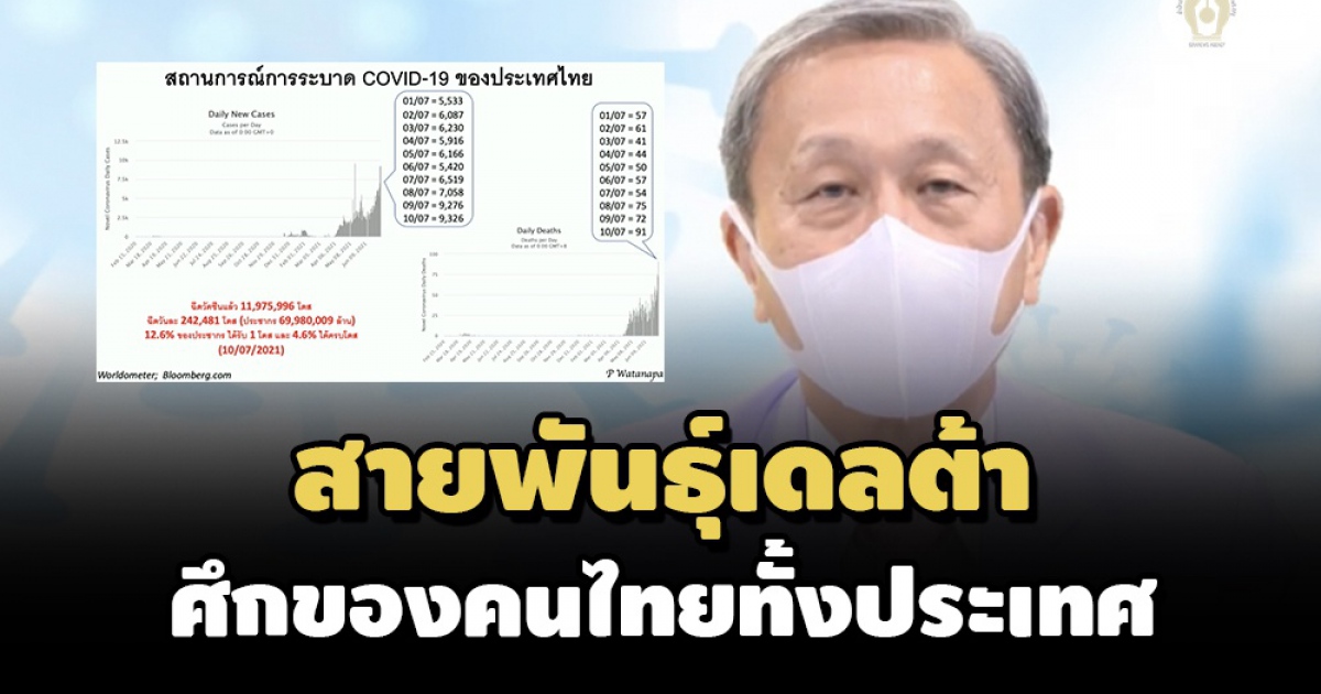 'หมอประสิทธิ์'เผยสายพันธุ์เดลต้าลามเกือบ 100 ประเทศ ชี้ศึกนี้เป็นของคนไทยทั้งประเทศ หวั่นยอดผู้ติดเชื้อพุ่งเกินหลักหมื่นรายต่อวัน ขอทุกคนร่วมมือกันปฏิบัติตาม 3 ยุทธวิธีคุมเข้ม คือมาตรการทางสังคม เร่งฉีดวัคซีน และล็อกดาวน์ เพื่อลดอัตราการติดเชื้อและการตาย