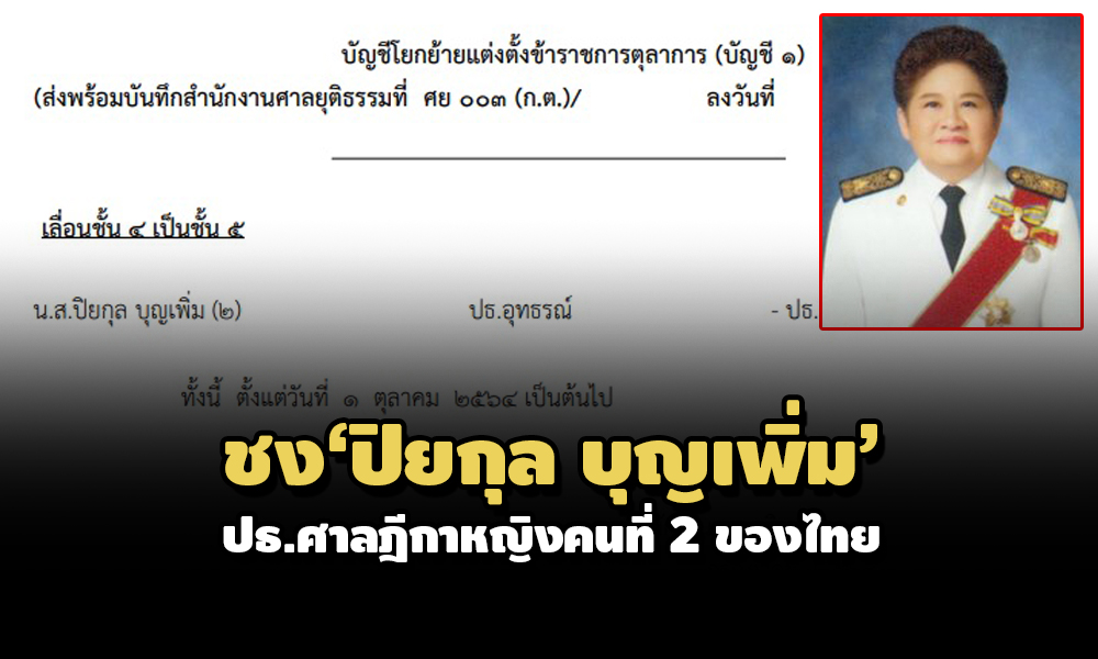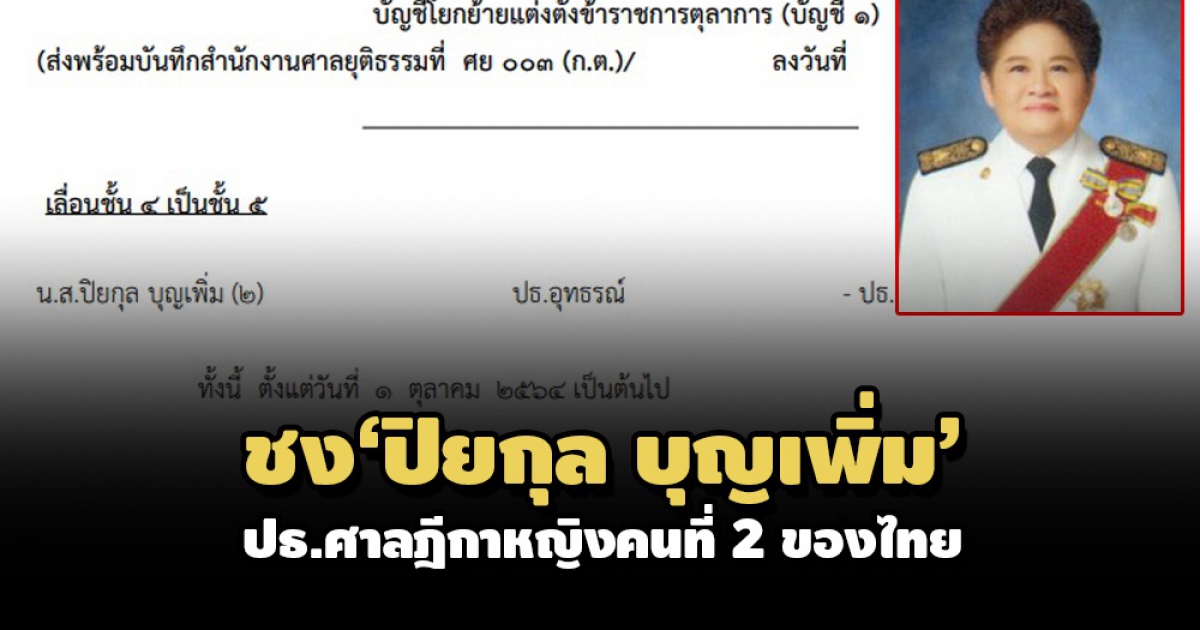 ชงชื่อ ‘ปิยกุล บุญเพิ่ม’ ปธ.ศาลอุทธรณ์ เป็นประธานศาลฎีกาหญิงคนที่ 2 ของไทย รอที่ประชุม ก.ต.เคาะ 19 ก.ค. 64