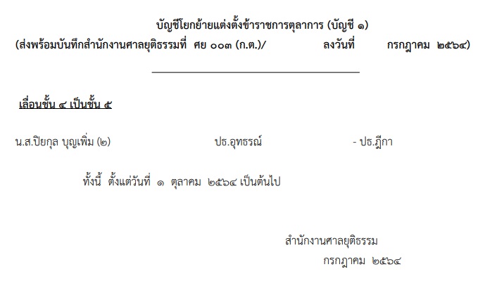 ผู้สื่อข่าวรายงานว่า เมื่อวันที่ 13 ก.ค. 2564 เว็บไซต์สำนักงานคณะกรรมการตุลาการศาลยุติธรรม (ก.ต.) เผยแพร่บัญชีโยกย้ายแต่งตั้งข้าราชการตุลาการ วาระ 1 ต.ค. 2564 (บัญชี 1) โดยมีการเสนอชื่อ น.ส.ปิยกุล บุญเพิ่ม ประธานศาลอุทธรณ์ เป็นประธานศาลฎีกา (คนที่ 47) โดยหลังจากนี้จะนำชื่อดังกล่าวเสนอที่ประชุม ก.ต. พิจารณาในวันที่ 19 ก.ค. 2564