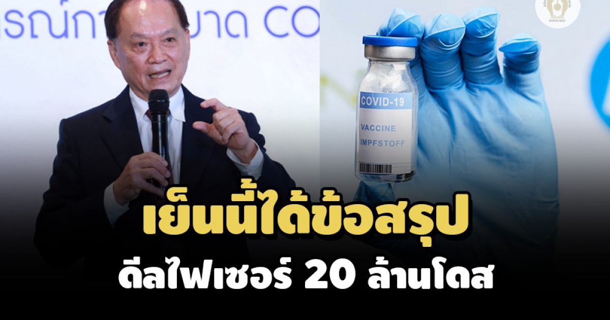 'หมอบุญ' เปิดเผยว่าในเย็นวันนี้ จะได้ข้อสรุปการนำเข้าวัคซีนไฟเซอร์ 20 ล้านโดส ส่วนองค์กรช่วยนำเข้า ขออุบไว้ก่อน ยันไม่ใช่ไม่ใช่หน่วยงานของกระทรวงสาธารณสุข ย้ำเคยดีลองค์การเภสัชกรรมแล้ว ปัญหาเยอะมาก
