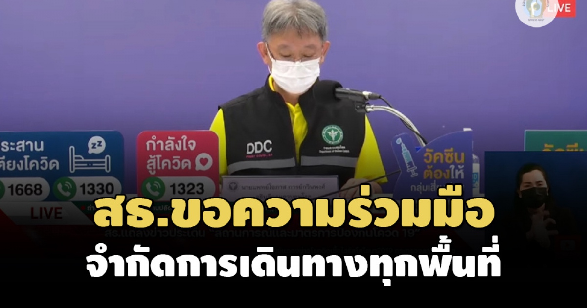 สธ. ขอความร่วมมือประชาชน จำกัดการเดินทางทุกพื้นที่ 'นพ.โอภาส' ย้ำ หากไม่ยกระดับมาตรการ จะมีคนป่วย-ตายสูงไปอีก 3-4 เดือน พร้อมจับตา ศปก.ศบค.ชงยาแรงปิดกิจกรรมเพิ่ม