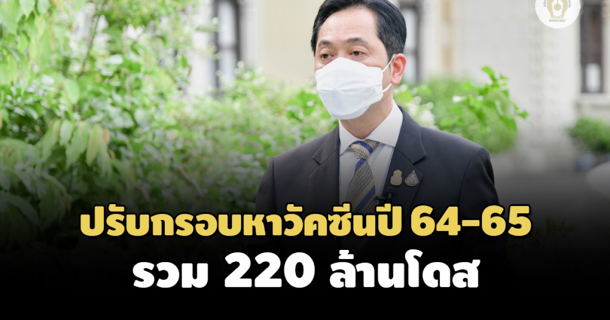 โฆษกรัฐบาล เผยที่ประชุม ศบค. 16 ก.ค. เห็นชอบปรับกรอบการจัดหาวัคซีน 2 ปี รวม 220 ล้านโดส แบ่งเป็นปี 2564 จำนวน 100 ล้านโดส และ ปี 2565 จำนวน 120 ล้านโดส ขณะที่นายกฯ สั่งเดินหน้าเจรจาซื้อวัคซีนครอบคลุมเชื้อกลายพันธุ์