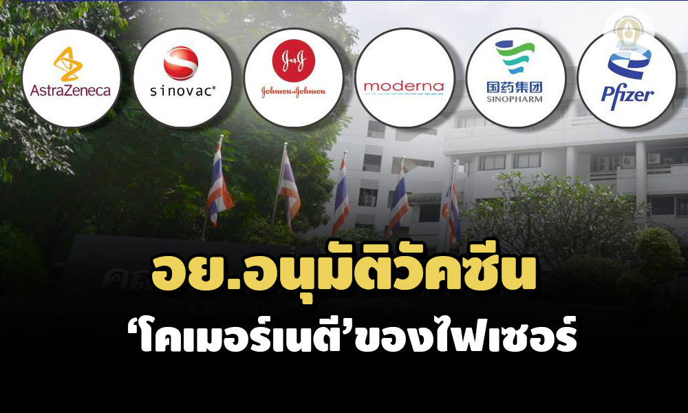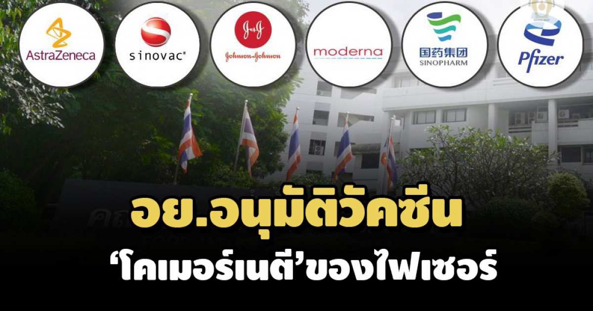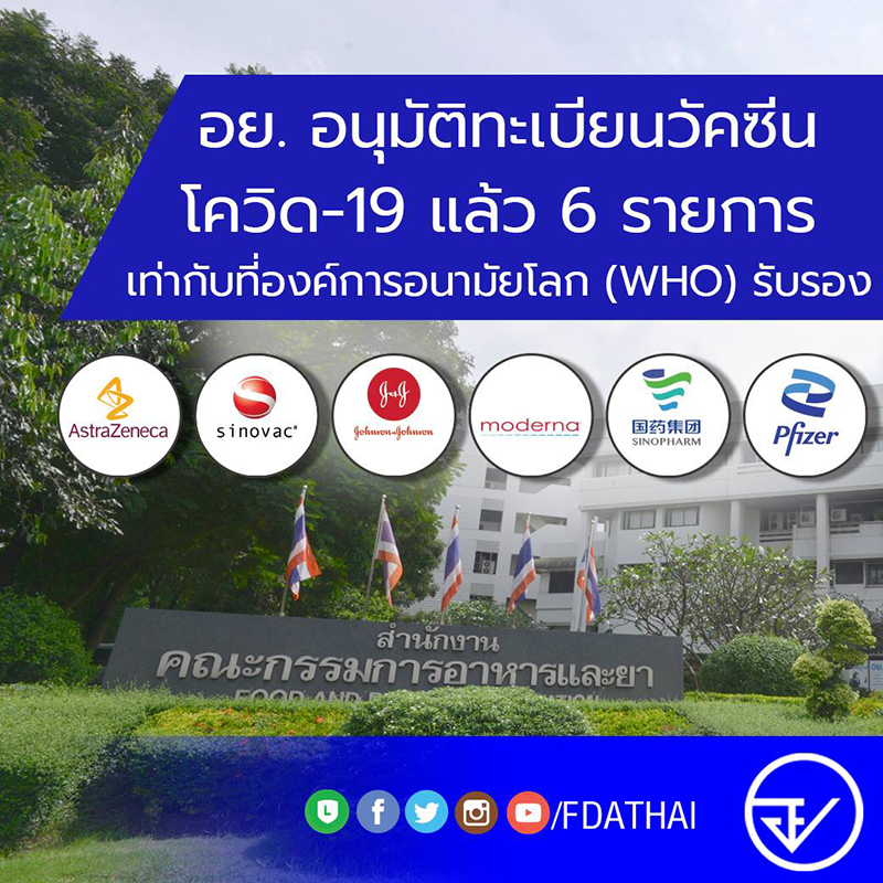 ทั้งนี้ อย. ได้อนุมัติทะเบียนวัคซีนโควิดแล้ว จำนวน 6 รายการ ได้แก่ วัคซีนแอสตร้าเซนเนก้า วัคซีนโคโรนาแวค วัคซีนจอห์นสันแอนด์จอห์นสัน วัคซีนโมเดอร์นา วัคซีนของซิโนฟาร์ม และล่าสุดวัคซีนโคเมอร์เนตีของไฟเซอร์ ซึ่งเป็นวัคซีนชนิดเดียวกับที่ทางองค์การอนามัยโลกรับรอง