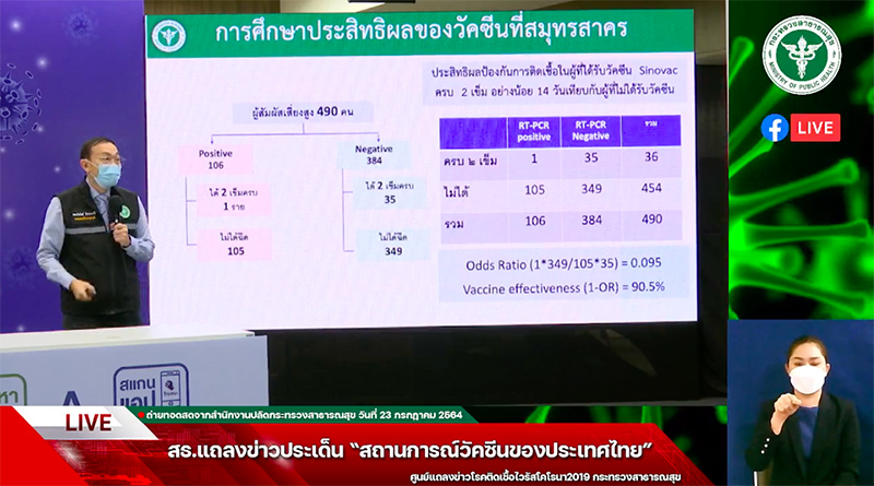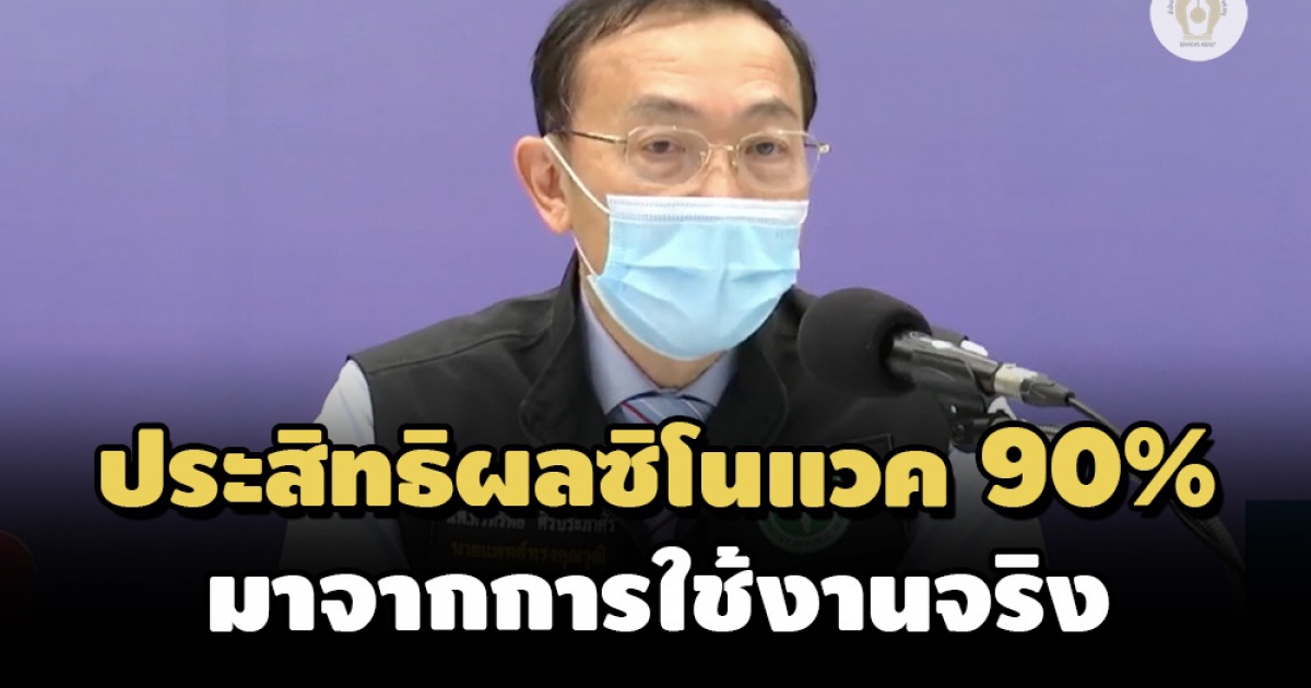 @ แจงประสิทธิผลวัคซีนซิโนแวค 90% ได้มาจากการใข้งานจริง