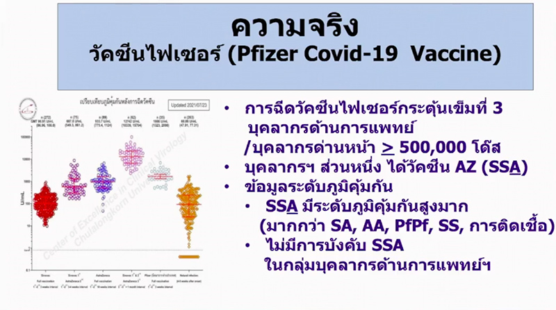 ผู้สื่อข่าวรายงานว่า เมื่อวันที่ 25 ก.ค.2564 นพ.รุ่งเรือง กิจผาติ ที่ปรึกษาระดับกระทรวง และโฆษกกระทรวงสาธารณสุข (รก.11) กล่าวถึงแผนการกระจายวัคซีนไฟเซอร์ว่า กรณีมีข่าวปรากฏในสื่อว่าบุคลากรการแพทย์จะได้รับวัคซีนเพียง 200,000 โดสนั้น ขอยืนยันว่าเป็นข่าวปลอม วัคซีนไฟเซอร์ที่จะได้รับมาจากสหรัฐอเมริกา 1.5 ล้านโดส ในช่วงปลายเดือน ก.ค.2564 จะจัดสรรให้บุคลากรการแพทย์ เพื่อเป็นบูสเตอร์โดสไม่น้อยกว่า 500,000 โดส