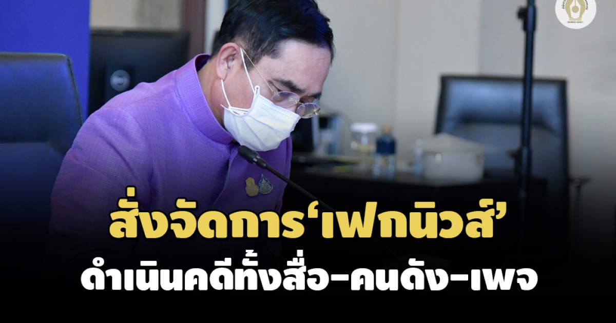 นายกฯ สั่งหน่วยงานที่เกี่ยวข้องใช้ข้อกำหนด ข้อที่ 11 จาก พ.ร.ก.ฉุกเฉินฯ ฉบับที่ 27 เอาผิด 'เฟกนิวส์' พร้อมชี้แจงข่าวจริงภายใน 24 ชั่วโมง ย้ำอย่าจับแค่ชาวบ้าน แต่ต้องดำเนินคดีได้จริง ไม่ว่าจะเป็นสื่อ คนดัง หรือ เพจต่างๆ