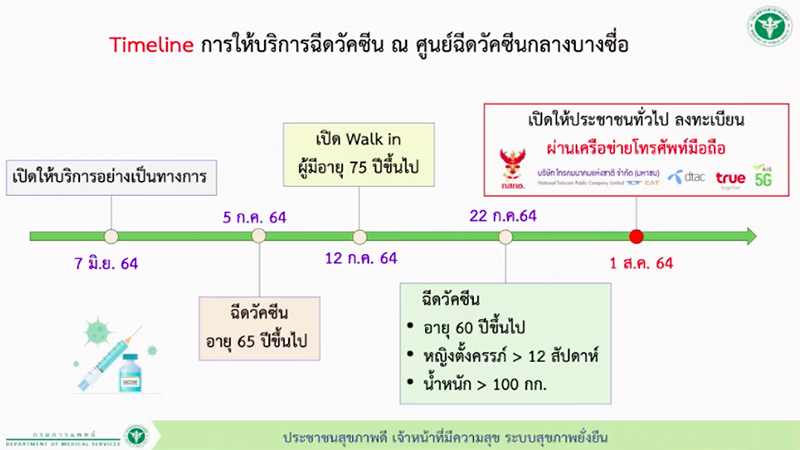 สำหรับศูนย์ฉีดวัคซีนสถานีกลางบางซื่อได้เปิดให้บริการตั้งแต่วันที่ 7 มิ.ย.2564 โดยเริ่มทดลองระบบกับบุคลากรกระทรวงคมนาคม ได้แก่ กลุ่มคนขับรถสาธารณสุข ต่อมาในวันที่ 5 ก.ค.2564 ได้เริ่มเปิดให้คนที่มีอายุ 65 ปีขึ้นไป เข้ารับการฉีดวัคซีน ซึ่งพบความหนาแน่นของประชาชน ในวันที่ 12 ก.ค.2564 จึงได้ปรับวอล์กอินเฉพาะคนอายุ 75 ปีขึ้นไป เพื่อลดจำนวนคนมาฉีดวัคซีนลง เมื่อฉีดไปได้ค่อนข้างมากแล้ว ในวันที่ 22 ก.ค.2564 จึงเปิดให้กลุ่ม 602 ได้รับวัคซีน พร้อมยืนยันว่าเราได้พยายามปรับระบบการฉีดวัคซีนเพื่อแก้ไขความแออัดมาตลอด ทั้งนี้ตั้งแต่วันที่ 1 ส.ค.2564 เป็นตั้นไป เพื่อให้การบริการเป็นระบบมากขึ้น จะไม่มีการวอล์กอินแต่จะเปลี่ยนมาให้ลงทะเบียนแทน เพื่อให้เราสามารถทราบว่ามีผู้ลงทะเบียนเท่าใด และเต็มจำนวนแล้วหรือไม่