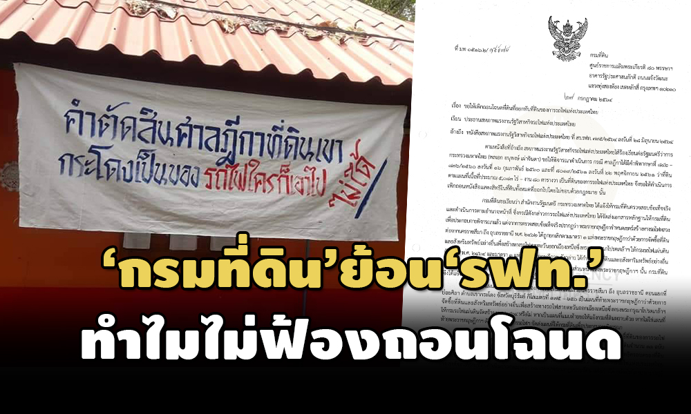 ขึ้นป้ายทวงที่ดินเขากระโดง! พนง. 2.3 พันคน ลงชื่อร้อง ‘ผู้ว่าฯรฟท.’ เร่งฟ้องถอนโฉนด