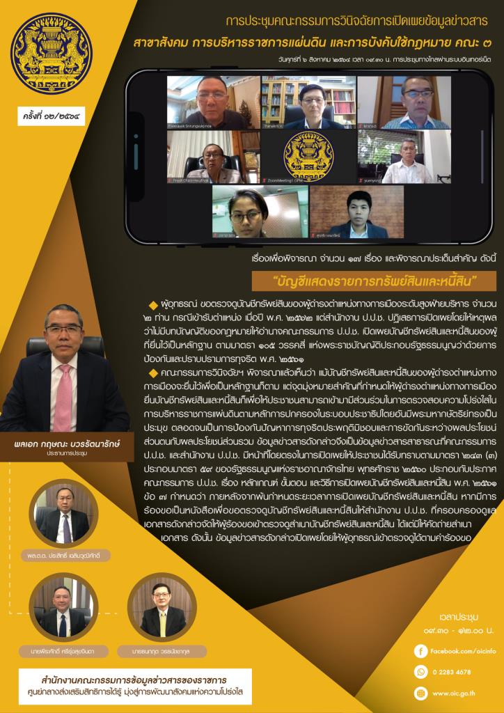 เมื่อวันที่ 6 ส.ค. 2564 สื่อหลายสำนักรายงานอ้างข้อมูลจากทำเนียบรัฐบาล ระบุว่า สำนักงานคณะกรรมการข้อมูลข่าวสารของราชการ (สขร.) สำนักงานปลัดสำนักนายกรัฐมนตรี เผยแพร่ผลการประชุมคณะกรรมการวินิจฉัยการเปิดเผยข้อมูลข่าวสาร สาขาสังคม การบริหารราชการแผ่นดิน และการบังคับใช้กฎหมาย คณะ 3 ครั้งที่ 12/2564 ผ่านประชุมทางไกลผ่านระบบอินเทอร์เน็ต มีเรื่องเพื่อพิจารณา จำนวน 17 เรื่อง