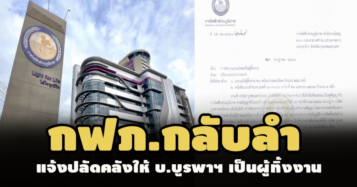 • กฟภ.กลับลำ แจ้งปลัดคลัง ให้ บมจ.บมจ.บูรพาฯ เป็นผู้ทิ้งงานระบบไฟฟ้าปัตตานี 125 ล.