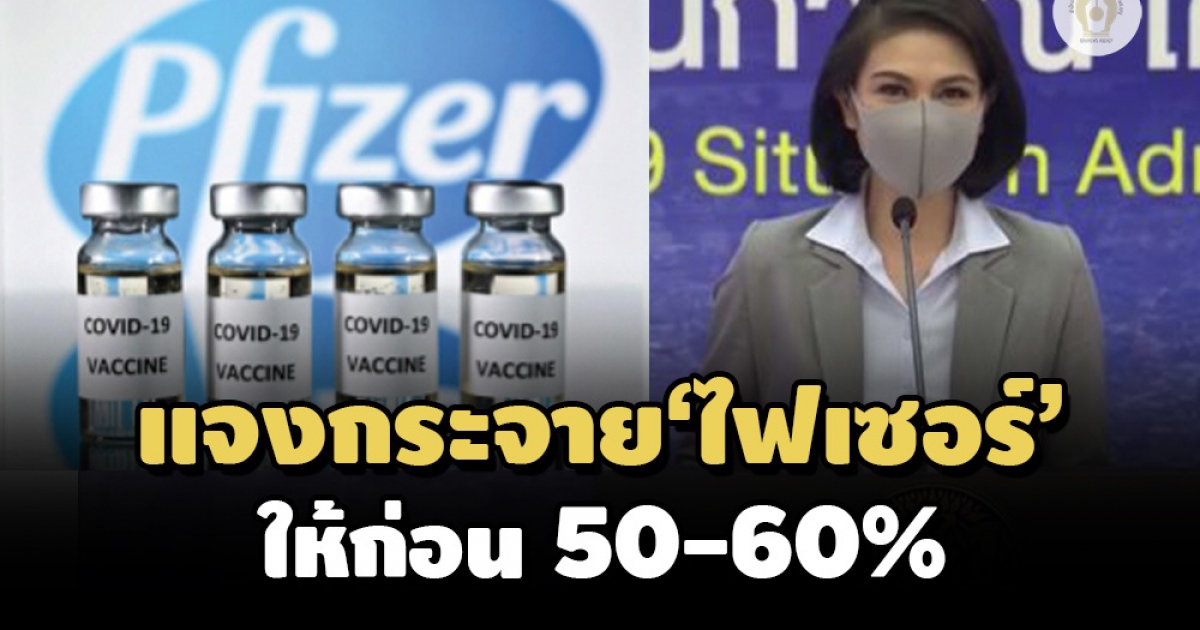 ผู้สื่อข่าวรายงานว่า เมื่อวันที่ 9 ส.ค.2564 พญ.อภิสมัย ศรีรังสรรค์ ผู้ช่วยโฆษกศูนย์บริหารสถานการณ์โควิด (ศบค.) กล่าวตอนหนึ่งในการรายงานสถานการณ์การระบาดประจำวันว่า การจัดสรรวัคซีนไฟเซอร์ จากการสำรวจความต้องการของบุคลากร ขณะนี้กรมควบคุมโรคจะจัดส่งในเบื้องต้น 50-60% ของความต้องการที่สำรวจไว้ก่อน หลังจากนั้นจะมีการสำรวจศักยภาพการฉีดแต่ละจุด และจะจัดสรรให้เพิ่มอย่างแน่นอน