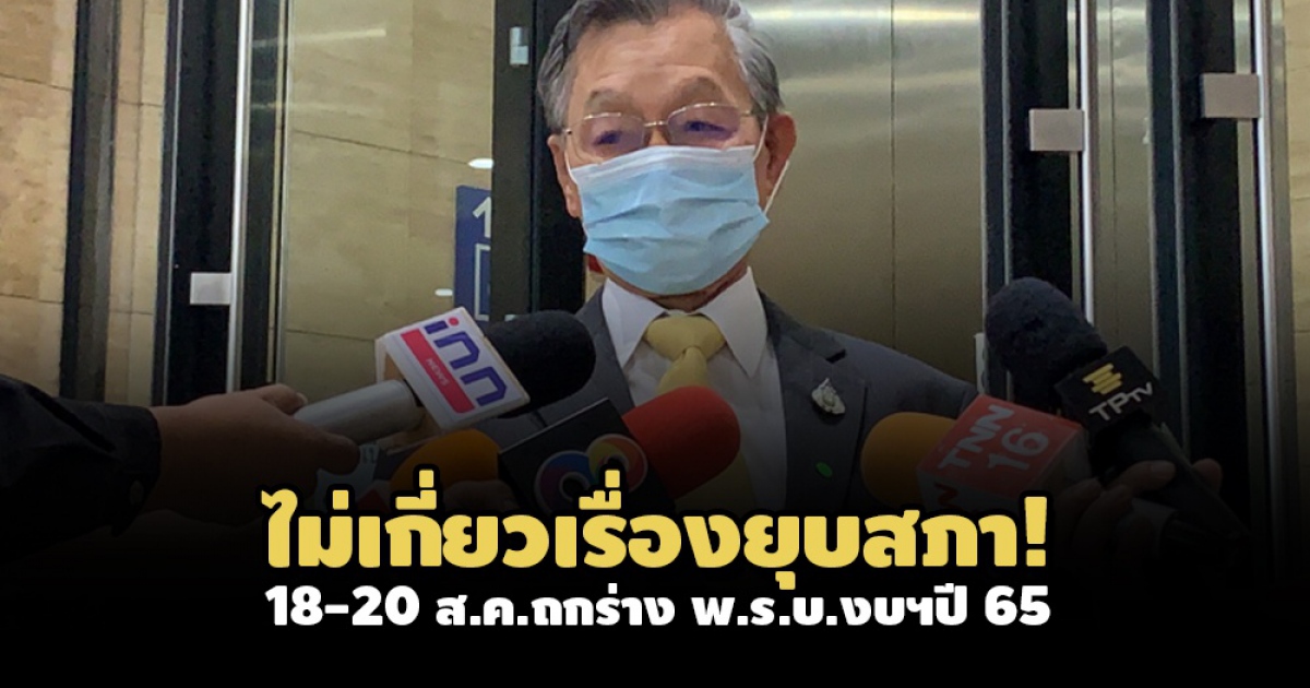 ไม่เกี่ยวเรื่องยุบสภา! ‘ชวน’ ยัน 18-20 ส.ค.64 ถกร่าง พ.ร.บ.งบประมาณฯปี 65 ทำหนังสือถึง สธ.-ศบค. ขอผ่อนผันให้ ส.ส.เดินทางโดยสะดวกแล้ว ลั่นเป็นเรื่องสำคัญ-ต้องทำให้เสร็จใน 105 วันตาม รธน.