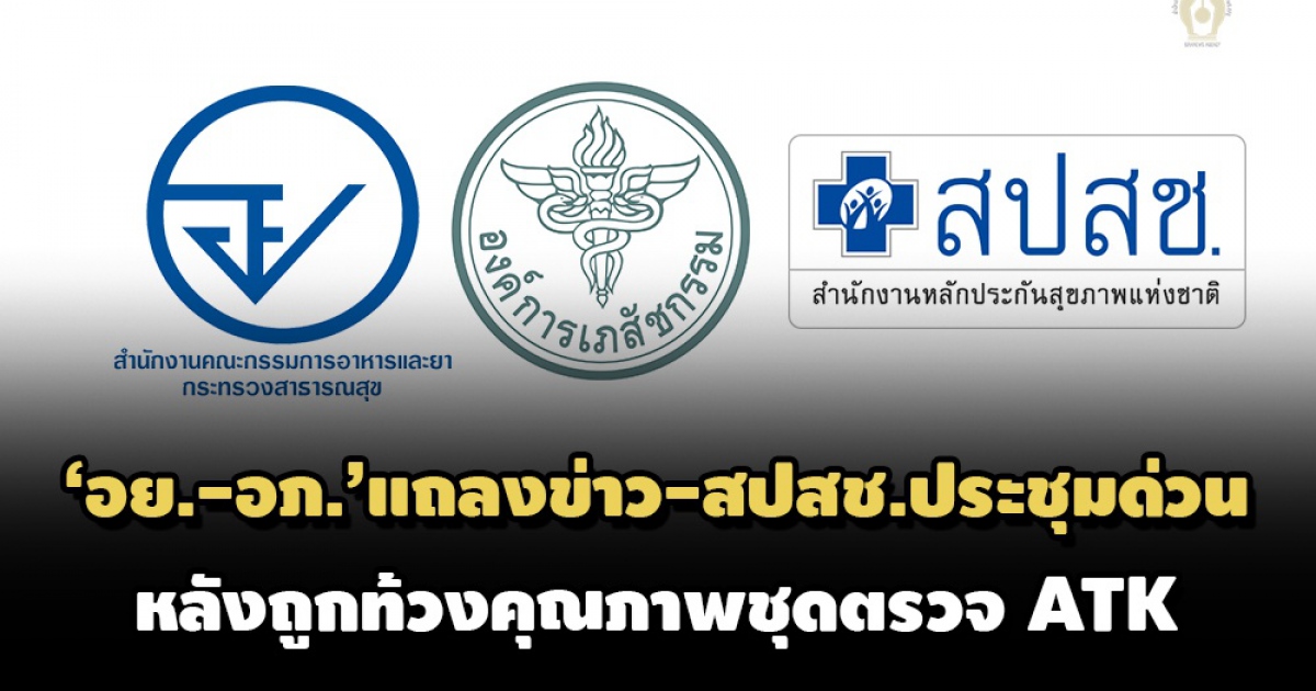 อย. ร่วมกับ อภ.เตรียมแถลงข่าวด่วน ขณะที่คณะอนุกรรมการจัดทำแผนจัดซื้ออุปกรณ์การแพทย์ สปสช. จัดประชุมด่วน 13 ส.ค.64 หลังแพทย์ชนบทท้วงคุณภาพชุดตรวจโควิด ATK