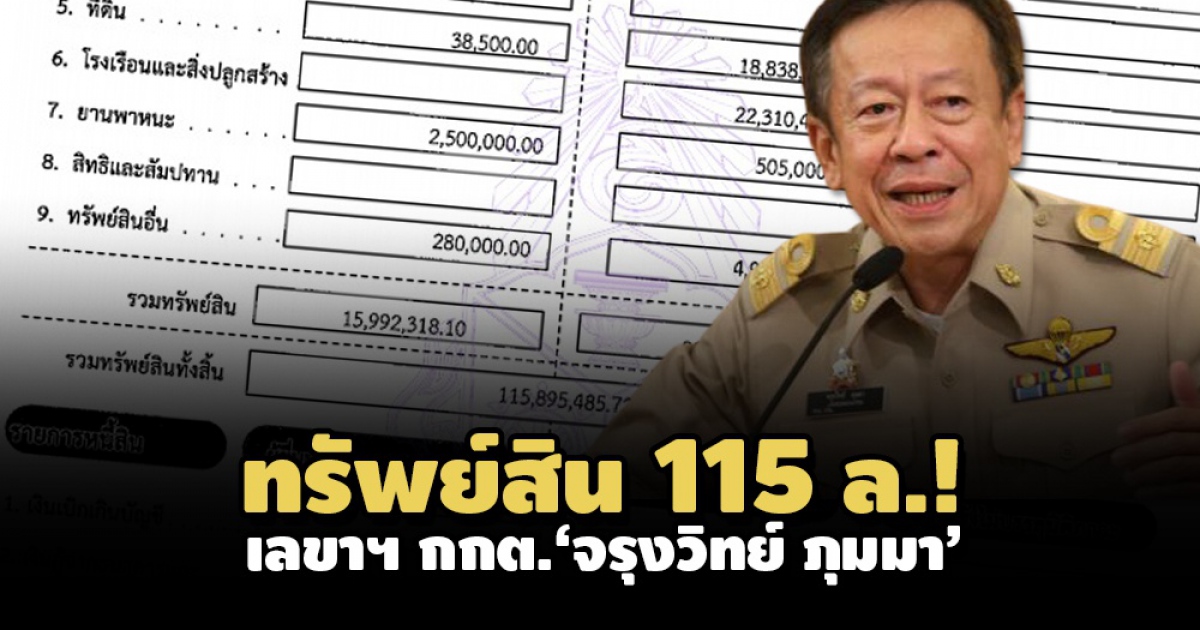 รวมทั้งคู่มีทรัพย์สินทั้งสิ้น 115,895,485 บาท ไม่มีหนี้สิน