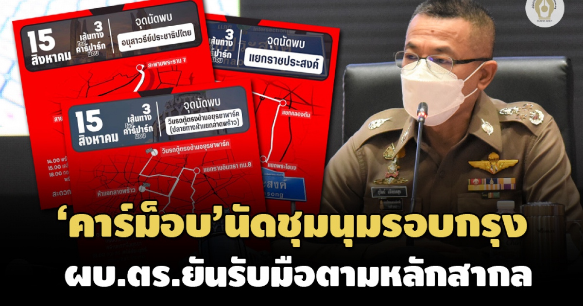 มวลชนนัดชุมนุม 'คาร์ม็อบ' หลายจุดทั่ว กทม. - ผบ.ตร.นั่งหัวโต๊ะวางแนวทางรับมือ ยืนยันบังคับใช้กฎหมายกับผู้ชุมนุมตามมาตรฐานสากล ใช้กำลังตามเหตุผลความจำเป็นของสถานการณ์ ไม่เกินกว่าเหตุ-ไม่เลือกปฏิบัติ