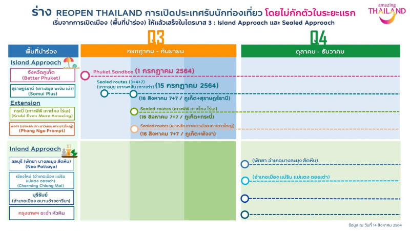 นอกจากนั้น ศบค.ยังเห็นชอบดำเนินมาตรการ เปิดพื้นที่นำร่องรับนักท่องเที่ยวในจังหวัดภูเก็ตเชื่อมต่อจังหวัดนำร่องอื่น หรือ มาตรการ 7+7 คือ อยู่ภูเก็ต 7 วันและสามารถเดินทางไปพื้นที่อื่นได้อีก 7 วัน โดยตั้งแต่ 16 ส.ค.2564 นักท่องเที่ยวที่อยู่ภูเก็ต 7 วัน เมื่อตรวจไม่พบเชื้อ สามารถเดินทางไปท่องเที่ยวสุราษฎร์ธานี กระบี่ หรือพังงา ได้ต่อไป