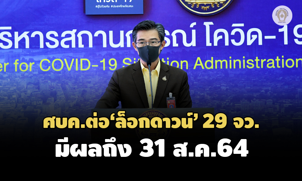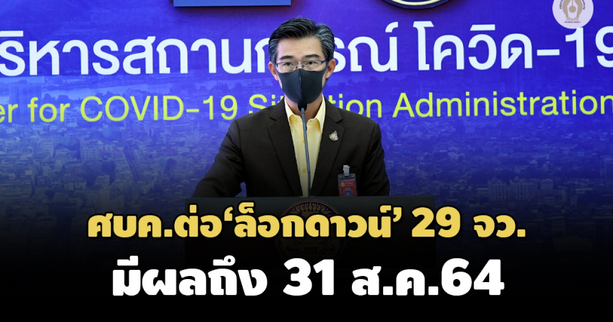 ศบค.มีมติขยายเวลาล็อกดาวน์ 29 จังหวัดออกไปจนถึง 31 ส.ค.2564 แต่ผ่อนปรนให้เปิดธนาคาร-สถาบันการเงินในห้างสรรพสินค้าได้ พร้อมเร่งจัดหาวัคซีนให้ครบตามเป้า 100 ล้านโดสในปี 2564 มอบสถาบันวัคซีนฯ สั่งไฟเซอร์อีก 10 ล้านโดส - ซื้อยี่ห้ออื่นเพิ่ม 10 ล้านโดส ส่วน อภ.ให้จัดซื้อซิโนแวคอีก 12 ล้านโดส ขณะเดียวกันยังรับทราบแผนต่อยอด 'ภูเก็ต แซนด์บอกซ์' และนำร่องโครงการ 'แฟกตอรี แซนด์บ็อกซ์' ด้วย